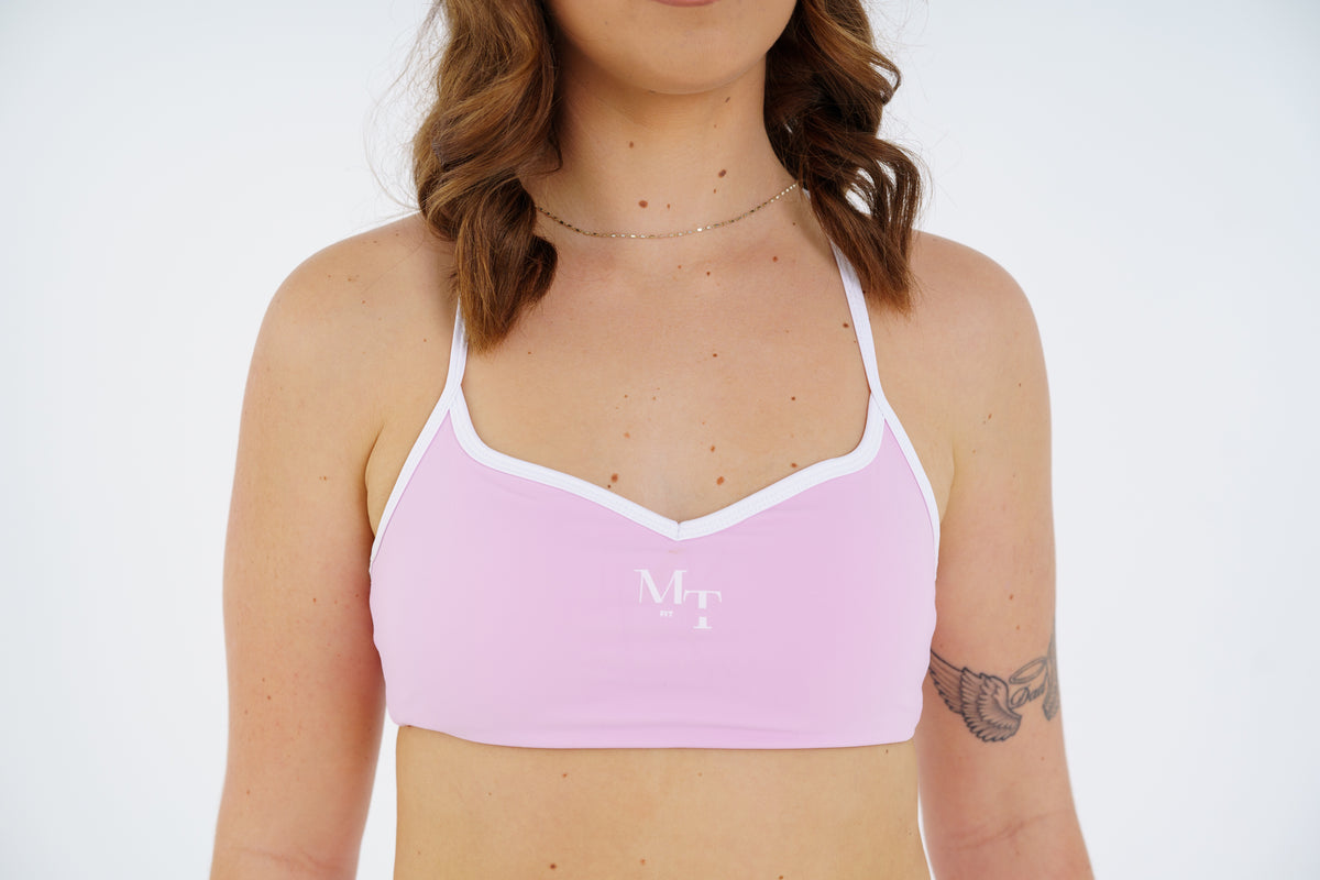 Experience the sublime touch of the supportive sports bra, tailored with racerback straps that not only offer superb support but also exude an air of effortless elegance. The blush pink shade is both flattering and versatile, making it an essential addition to your activewear collection.